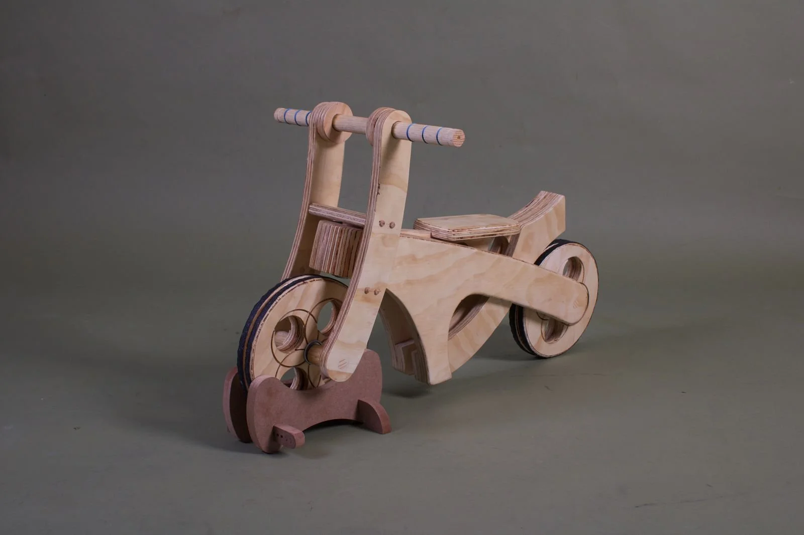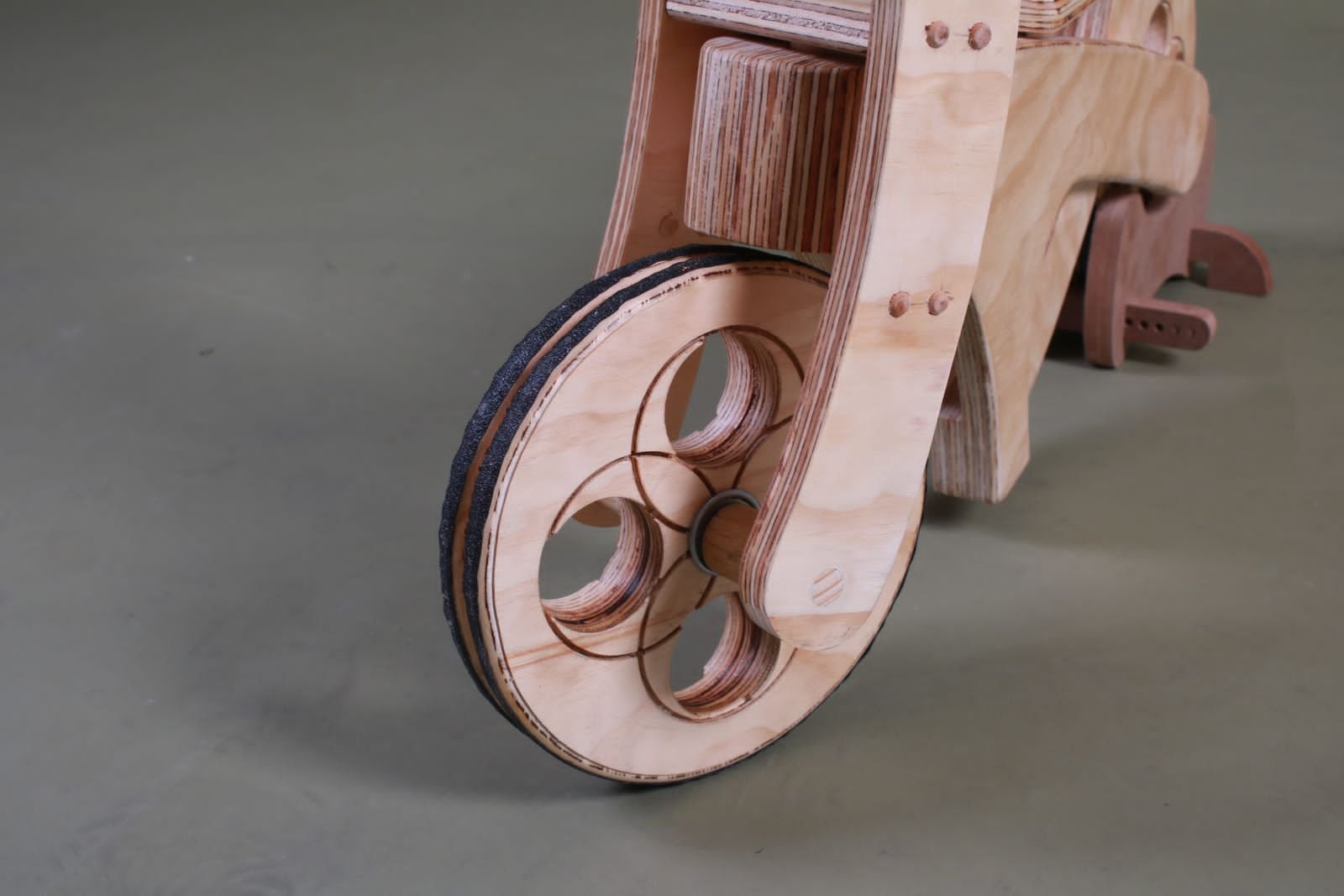 Introducing the handmade wooden bicycle designed specifically for children aged 3 to 4 years old. Crafted with care and precision, this bicycle combines the timeless beauty of wood with modern safety features. Each wheel is equipped with anti-slip treads, ensuring a secure and stable ride for your little ones. The rims of the wheels feature intricately designed patterns, adding a touch of whimsy and charm to the bike's aesthetic. With its sturdy construction and thoughtful design, this wooden bicycle promises hours of joy and adventure for young riders.
